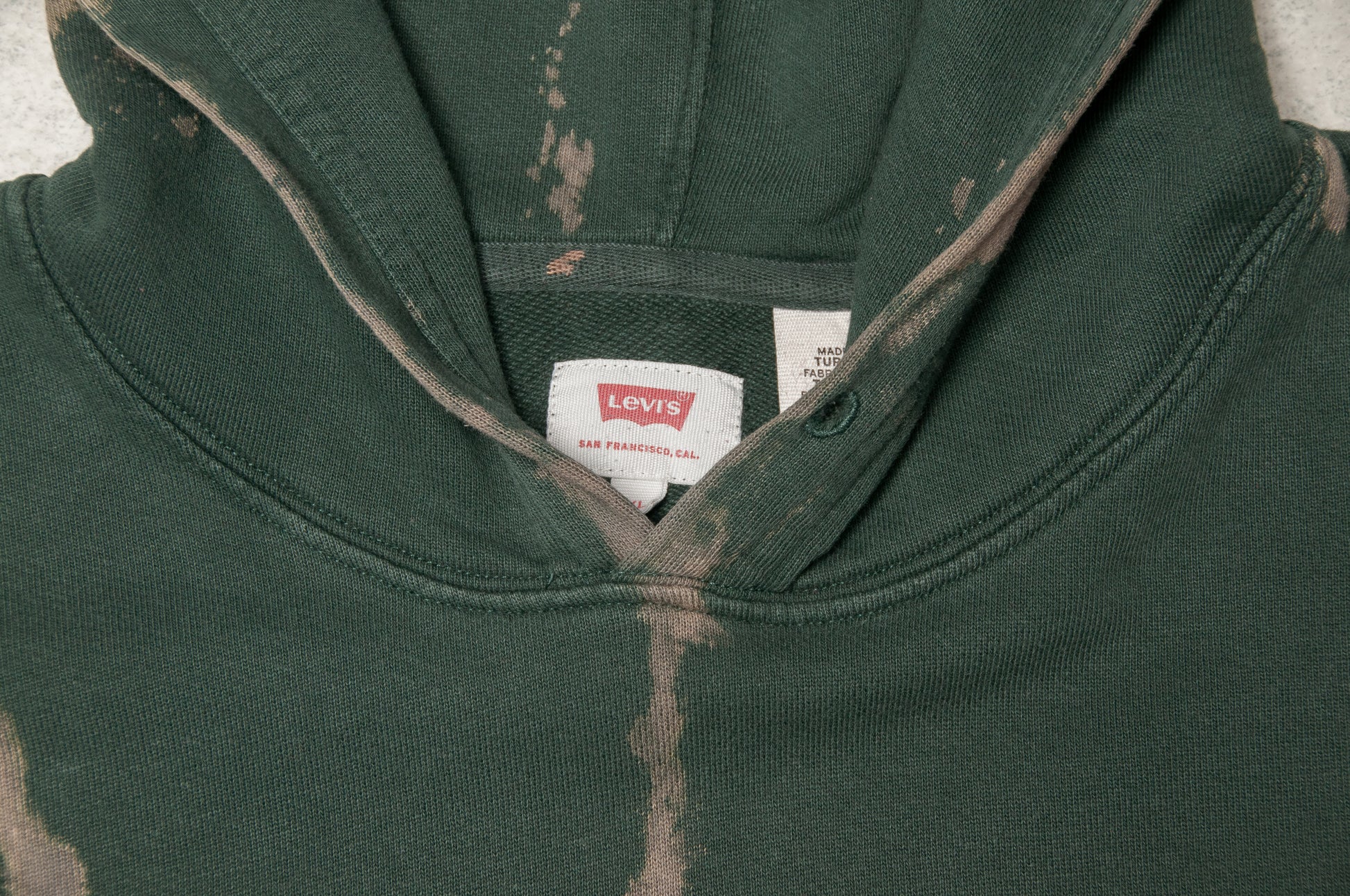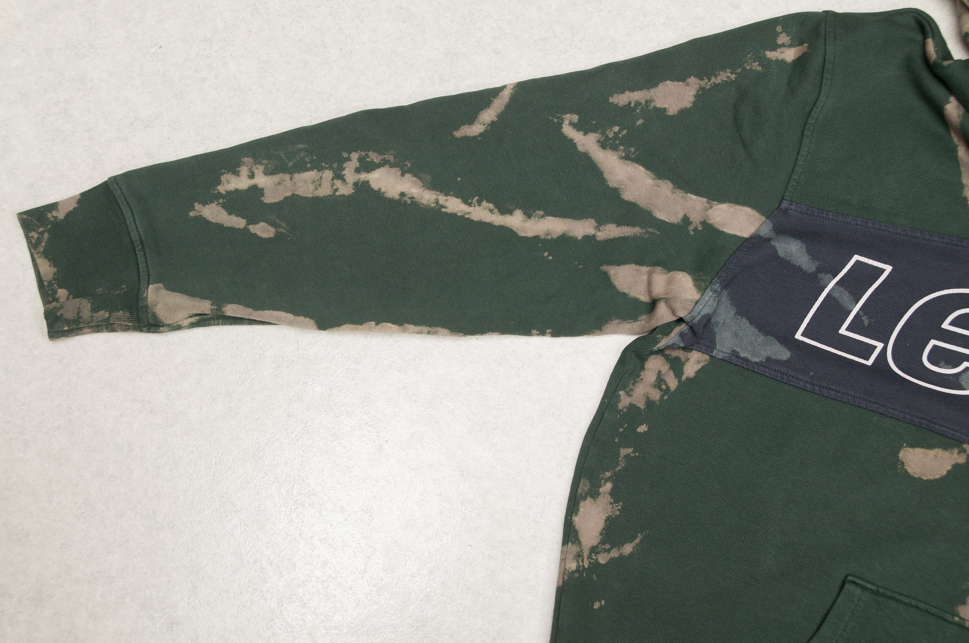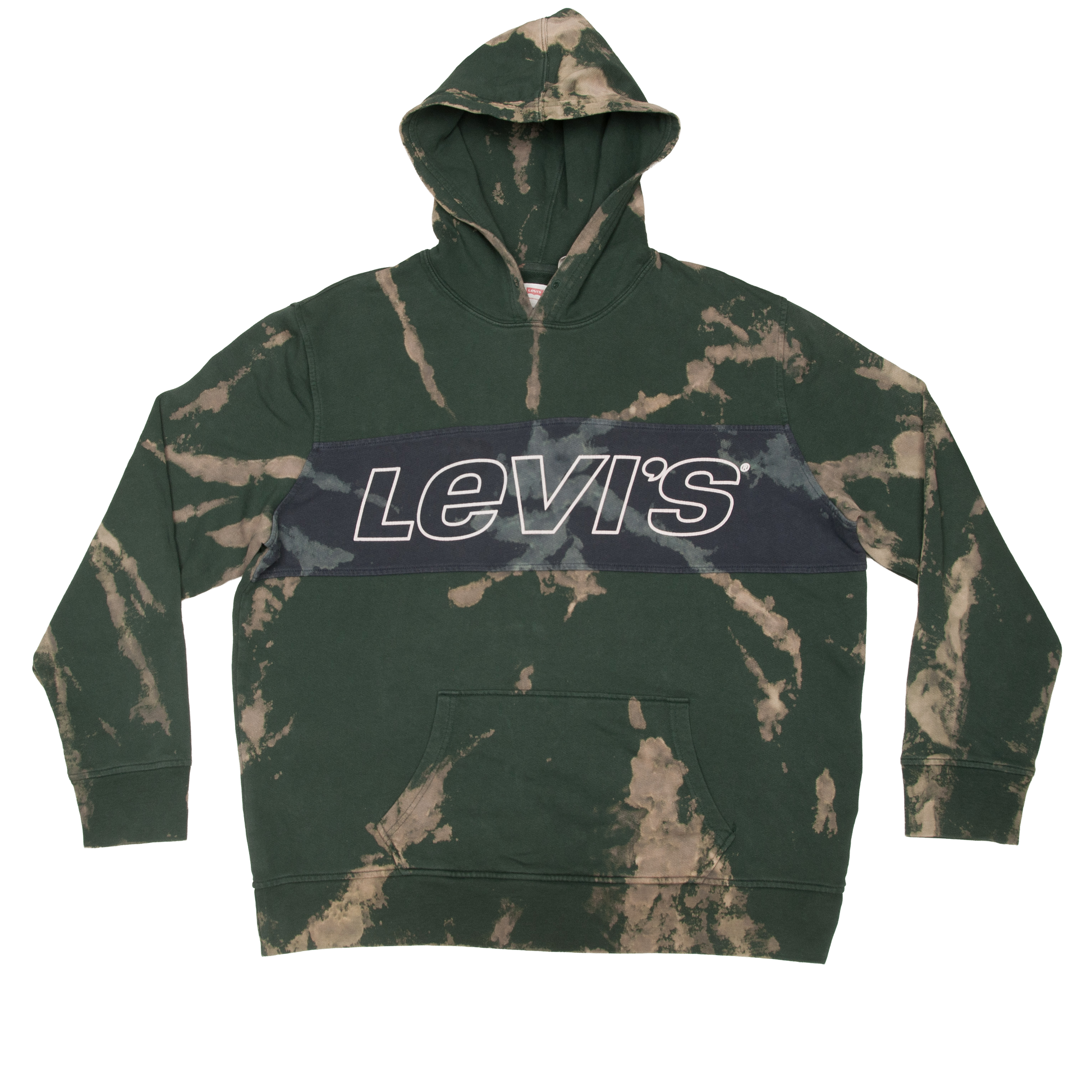Upea uniikisti batiikkivärjätty vihreä Levi´s huppari vuodelta 2019. Tämä huppari oli vaarassa joutua hävikkiin pysyvien tahrojen takia. Huppari pelastettiin Vintage-Matin työpajalla käsityönä tehdyllä batiikkivärjäyksellä, jonka jälkeen tahrat eivät enää haittaa. Toista tällaista hupparia ei siis ole olemassa, tämä on ainoa kappale.