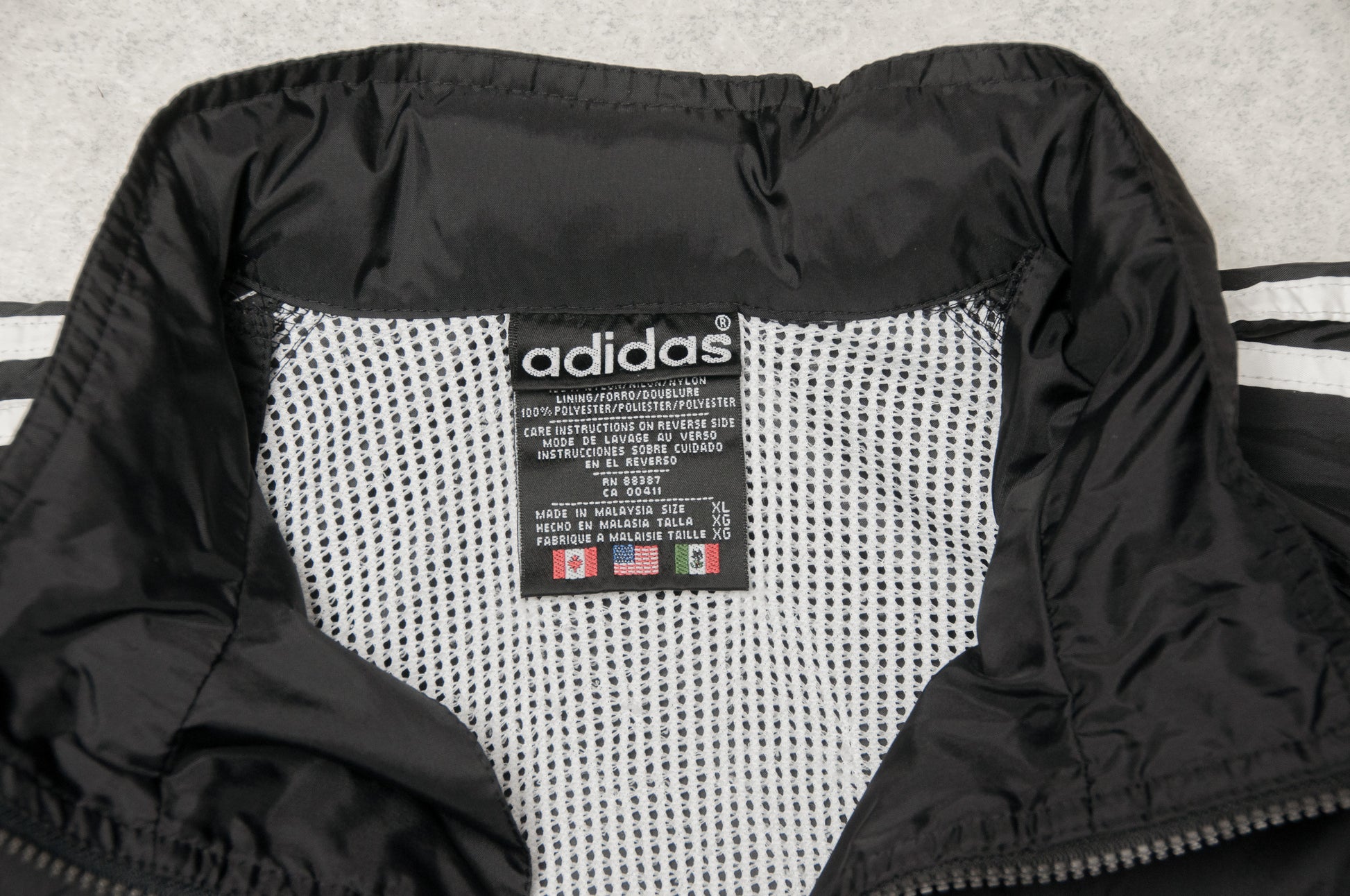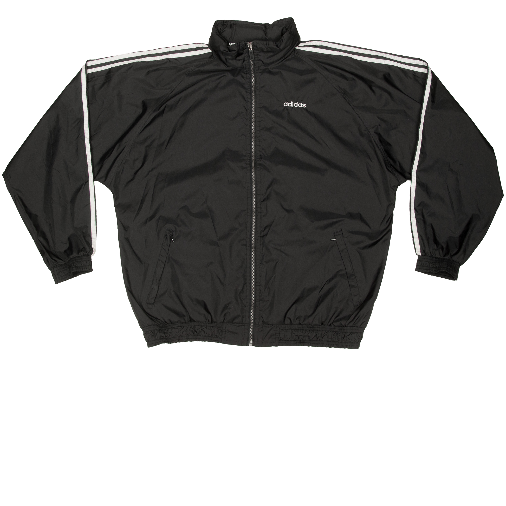 Hieno musta vintage Adidas tuulitakki 90-luvun puolesta välistä. Selän yläosassa verkkovuori. Kauluksen sisään on piilotettu huppu. Pohjois-Amerikan mallistoa, joten harvinainen Suomessa. Kokomerkintä on XL ja mitoitus on väljä. Istuu XXL-kokoiselle melko lähelle ihoa tai XL-kokoiselle rennon väljästi. Istuu parhaiten noin 190-200 cm pitkille.
